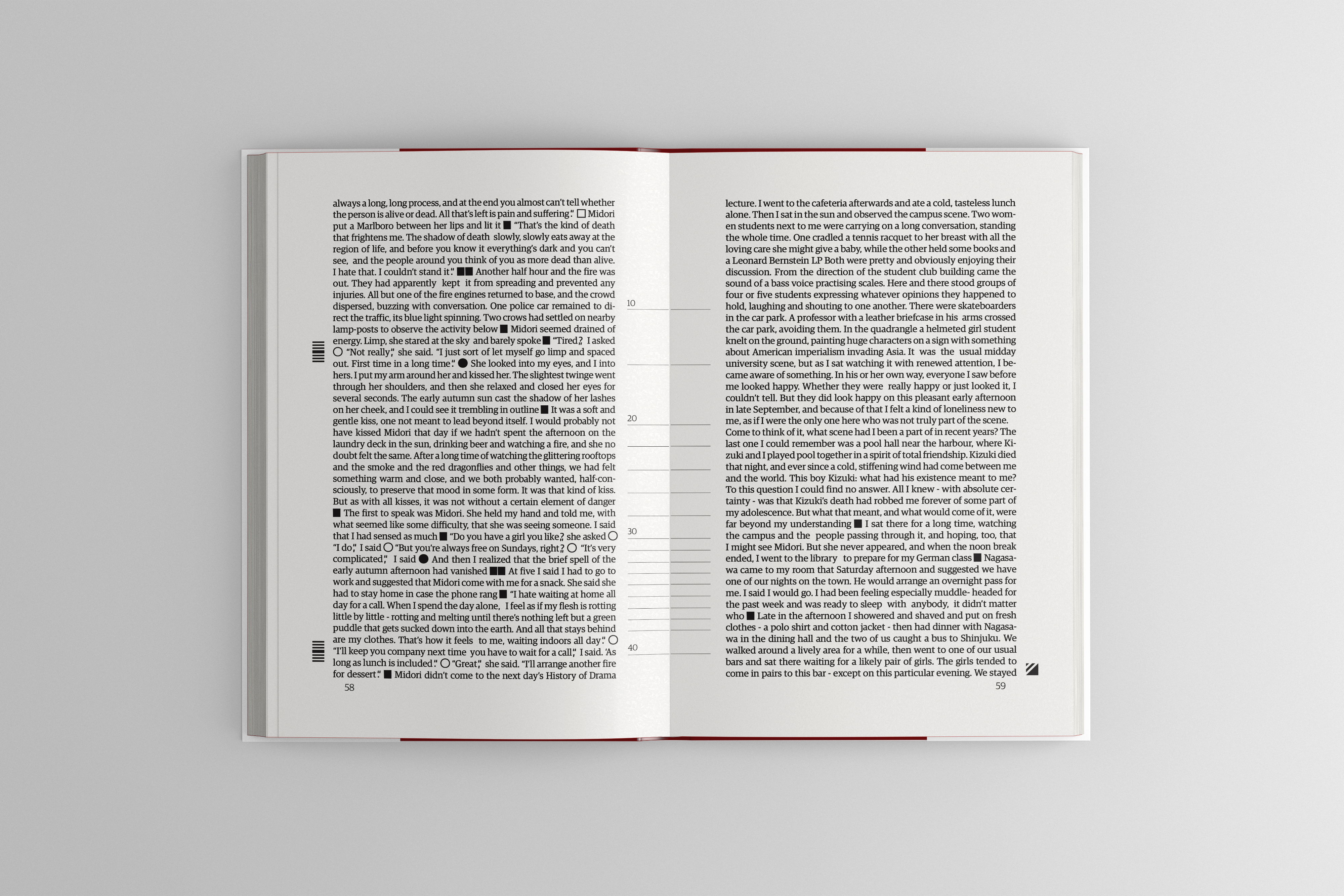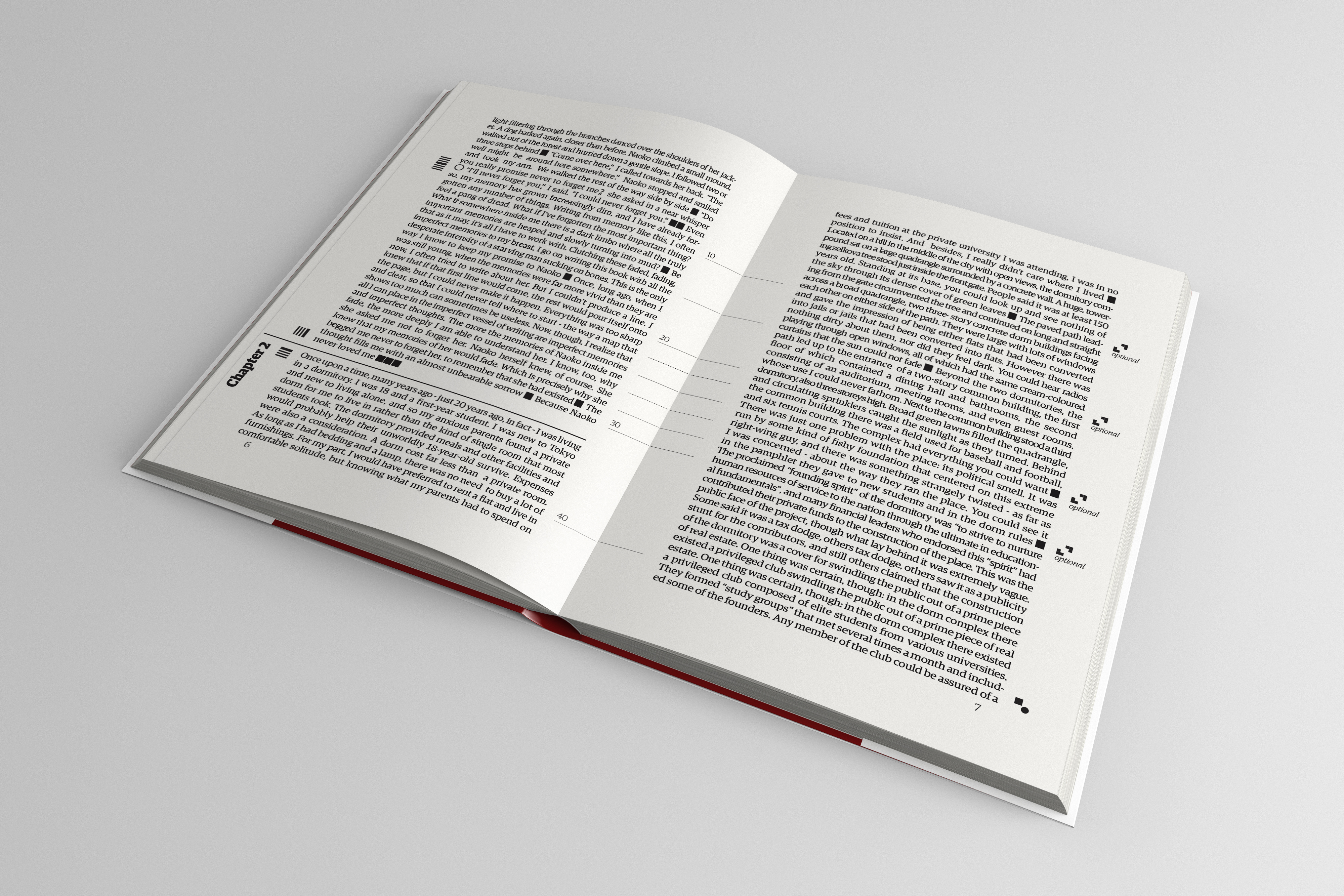 An experimental typography project, in which the unnecessary whitespace in mass-market novel publications is evaluated, with a new composition system developed in order to reduce this whitespace, thus making typography and production within this market more environmentally sustainable.